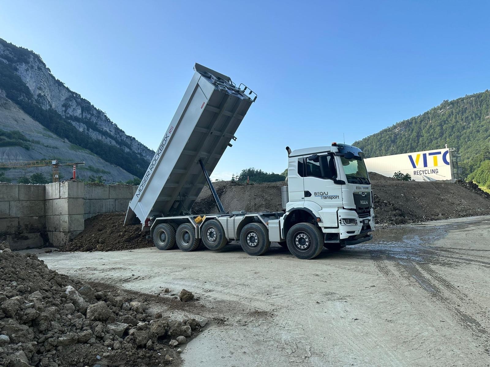- 5-Achsen-Kipper mit bis zu 40 Tonnen Nutzlast für Baulogistik und Aushubtransporte